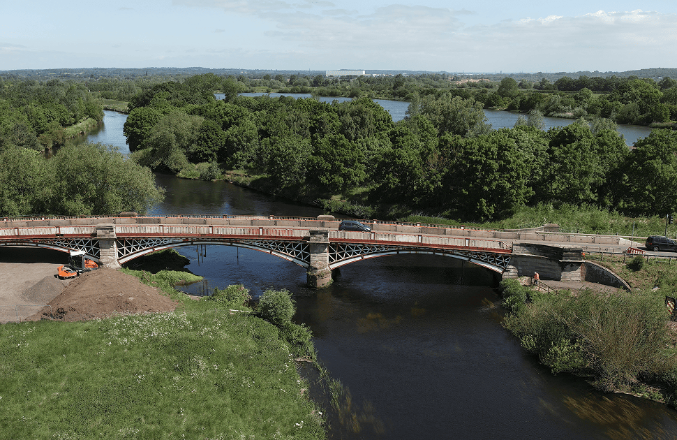 Chetwynd Bridge is a Grade II* listed three-arch cast-iron bridge in Staffordshire, UK, and the largest surviving pre-1830 cast-iron arch bridge in England, (second largest in the world). Built in the early nineteenth century, it represents one of the most significant surviving examples of cast-iron arch bridge construction worldwide. Following a comprehensive programme of restoration to its ironwork and protective coating, Staffordshire County Council, (SCC), with Amey acting as asset manager. Amey consulting undertook a comprehensive structural assessment of the bridge involving load testing and a vision-based sensing to monitor movement. Based on recorded results mirrored by finite element modelling Amey showed the cast iron arches were being loaded beyond available capacity which resulted in the bridge being restricted to 7.5 Tonnes.
